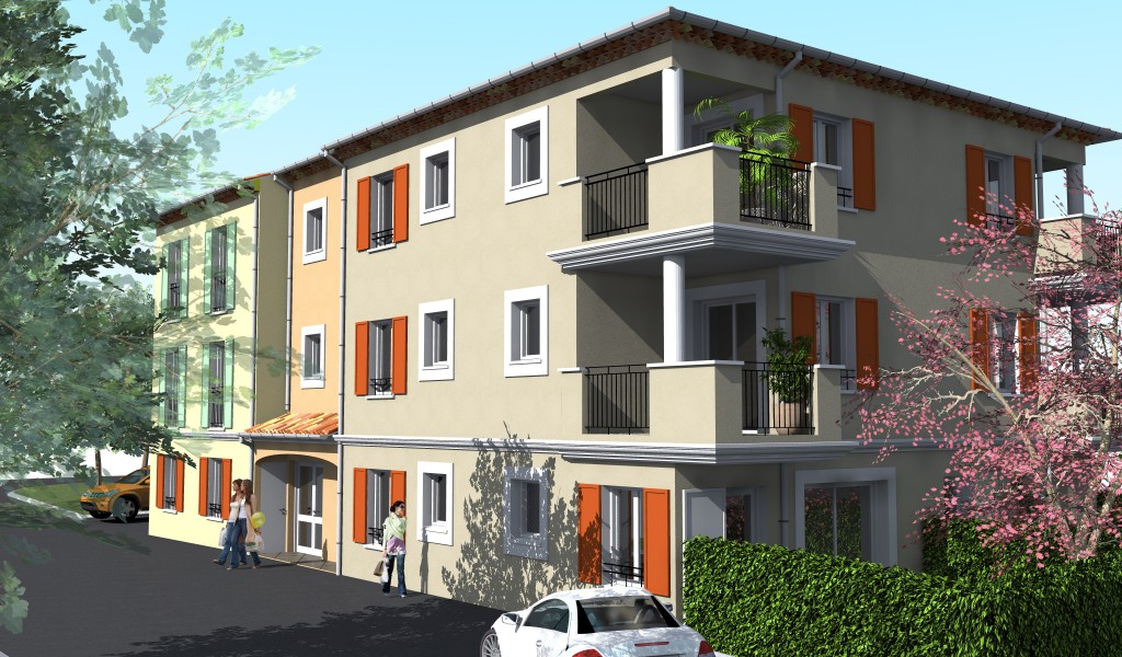 Programme immobilier à la Crau. Le Cézanne, une résidence de 30 appartements de standing en accession libre qui vous séduira par son architecture provençale, la qualité de ses prestations ainsi que ses grandes terrasses. Parkings privatifs et box en sous sol.